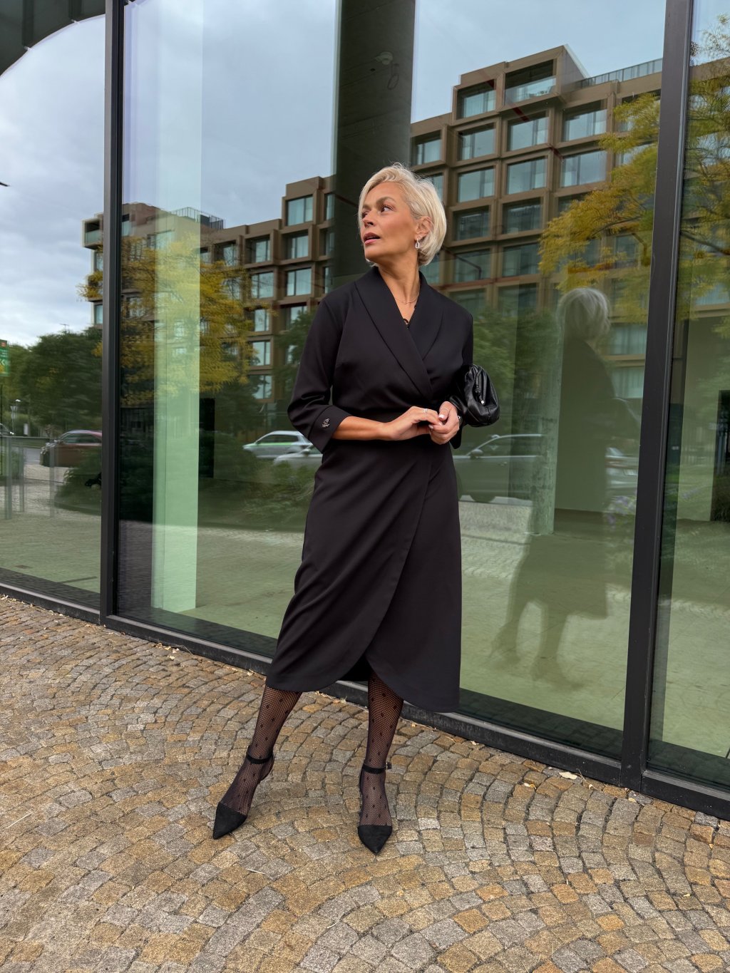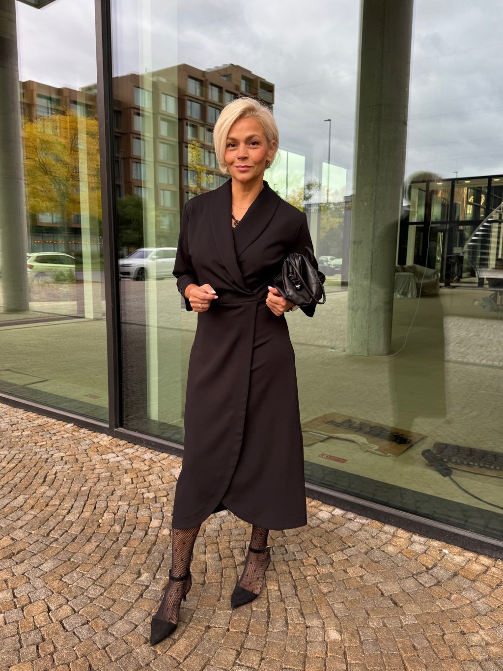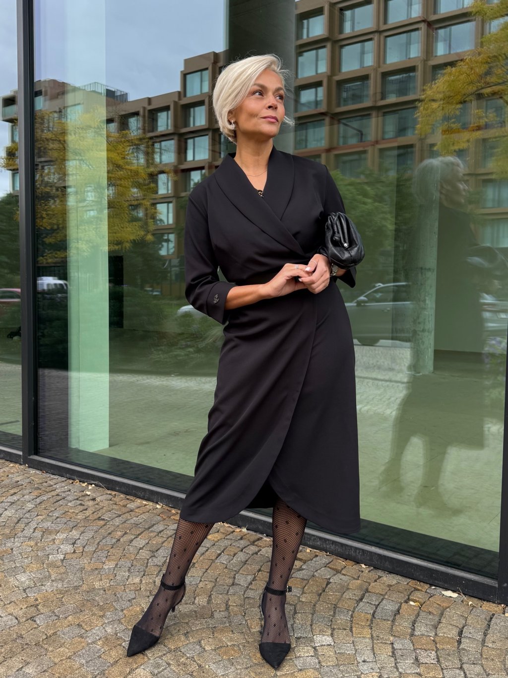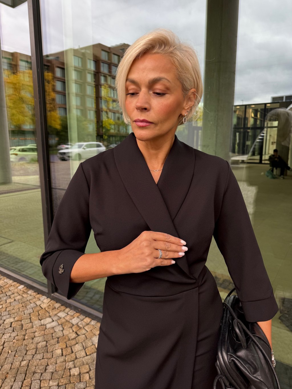 Tyto černé šaty s přepásáním v pase vyzařují nadčasovou eleganci a sebevědomí. Díky jednoduchému střihu a precizním detailům působí dokonale sofistikovaně pro každou příležitost.K šatům dostanete pásek zadarmo.Z boku mají skrytý zdrhovadlo pro snadnější oblékání.