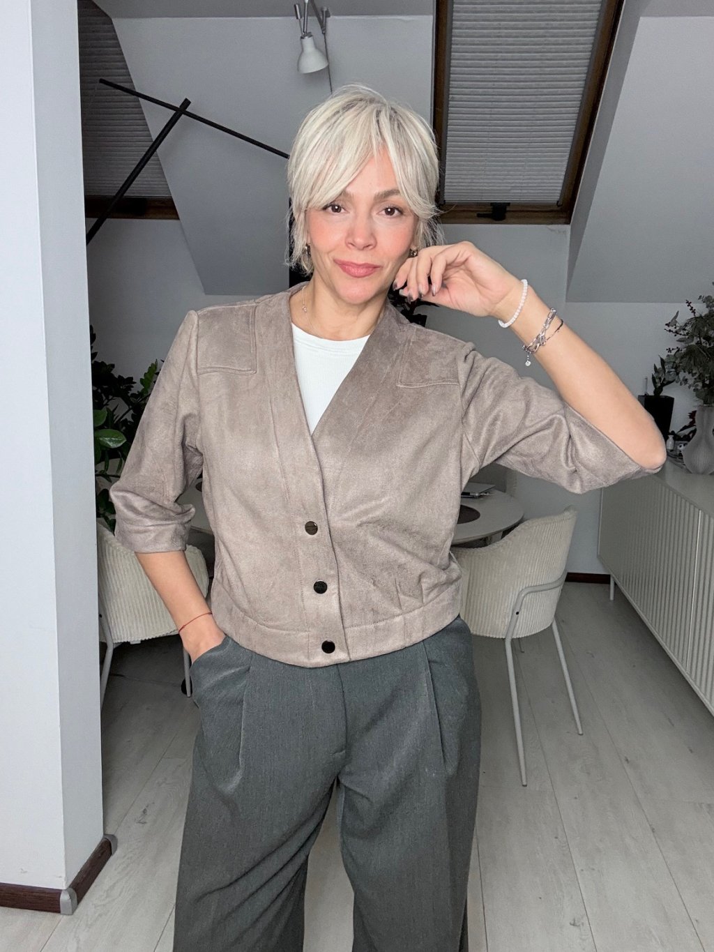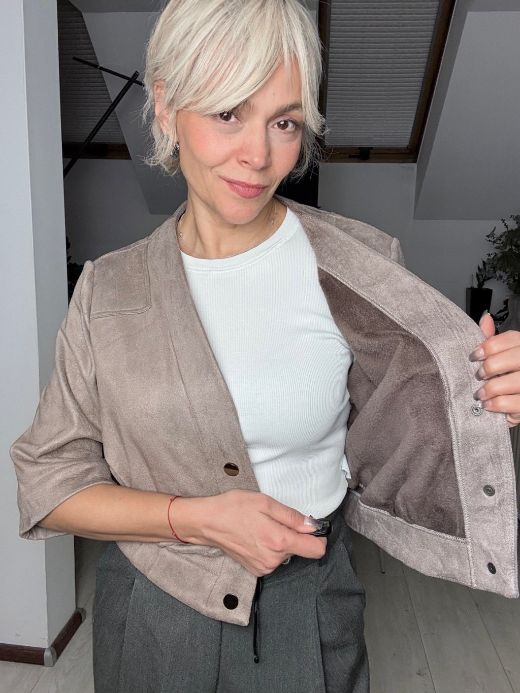 Náš crop top je ušitý ze semisového materiálu s fleecem, krásně hřeje a je velmi příjemný na nošení i vrstvení.