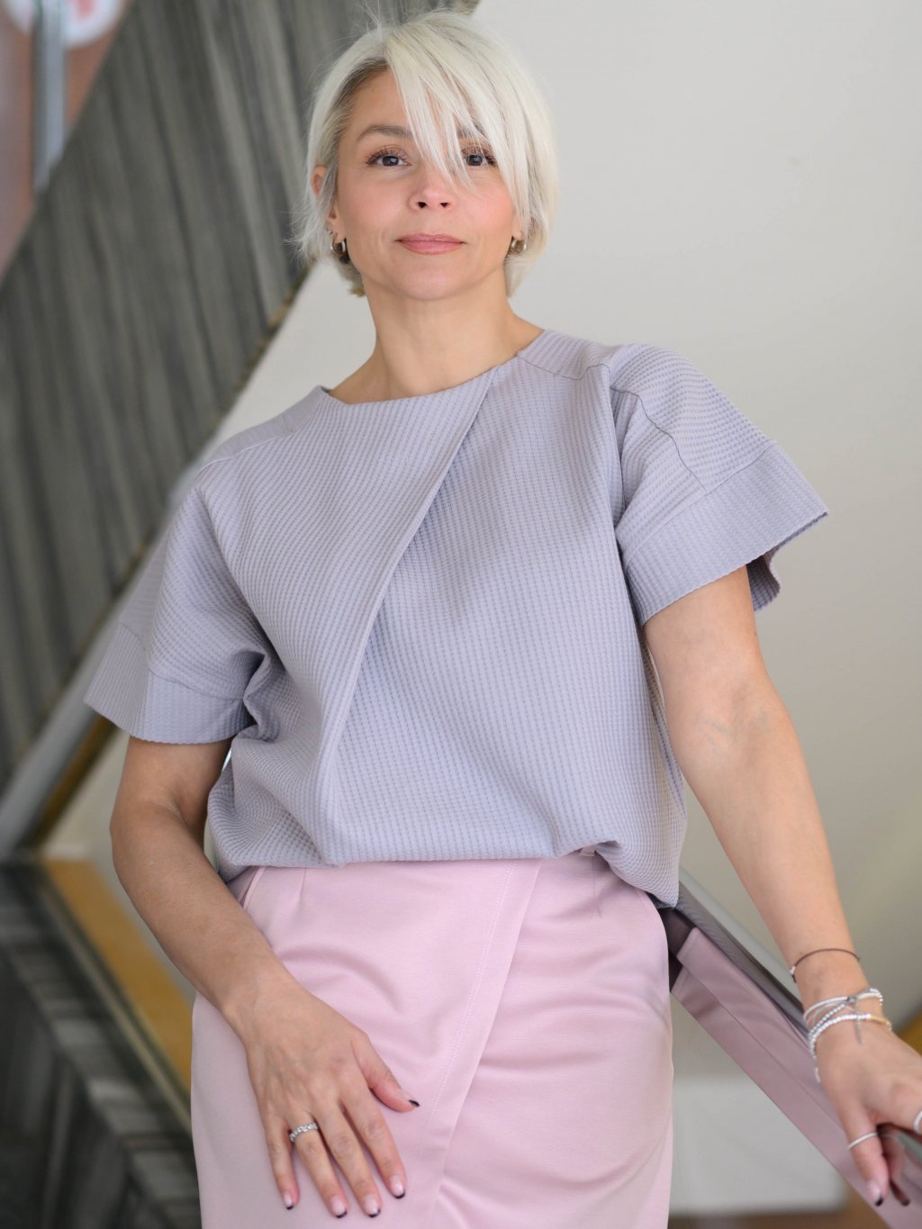 Halenku Neo jsme pro vás ušili z příjemné vafloviny, která krásně drží tvar, a tak se tato halenka stane opět jedinečným kouskem vašeho šatníku.