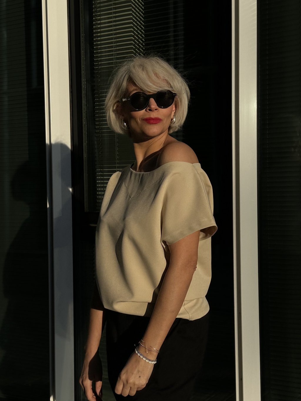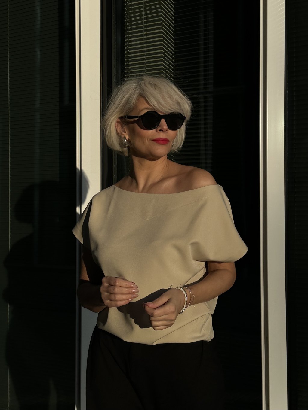 Minimalistická halenka hodící se opravdu ke každému kousku vašeho šatníku. Sukně, kalhoty, kraťasy...nic není problém. Její všestrannost oceníte jak u elegantních tak každodenních outfitů.