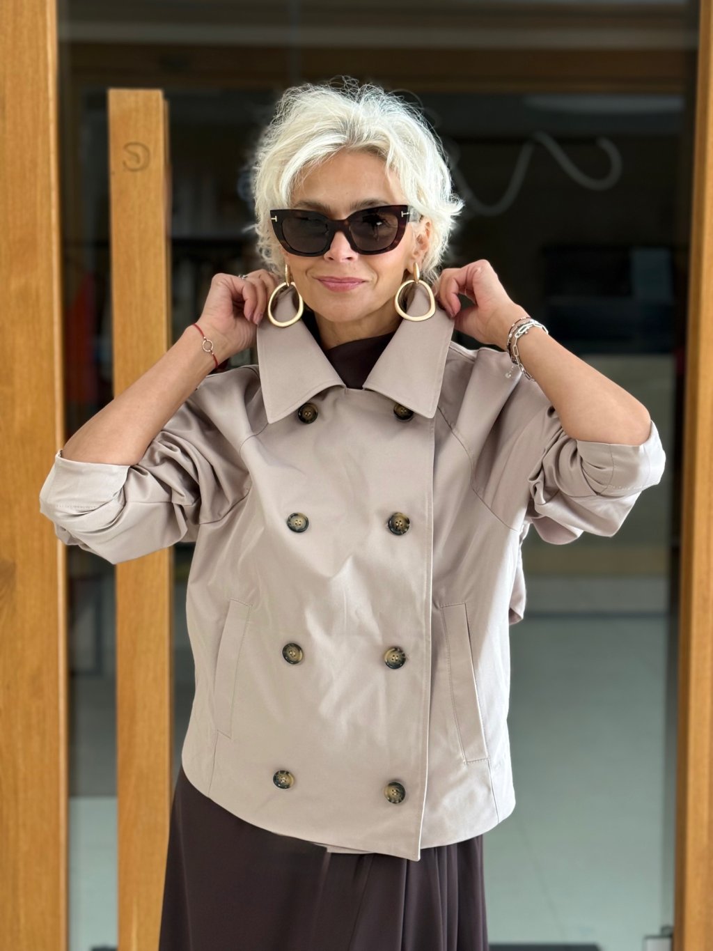 Dvě řady knoflíků ještě podtrhují její jedinečnost.