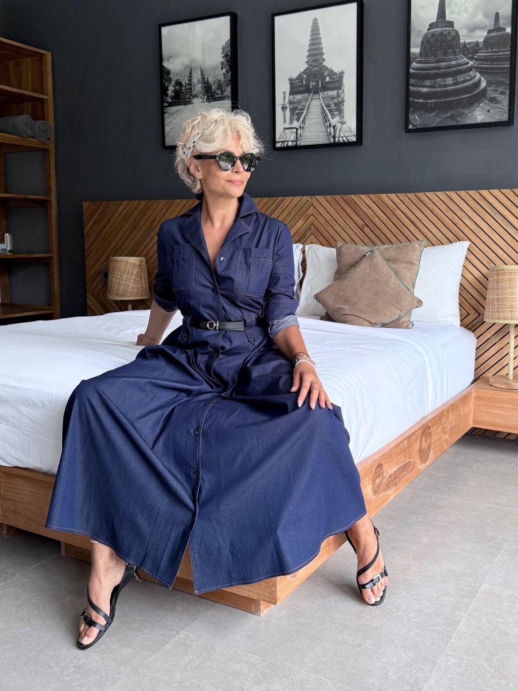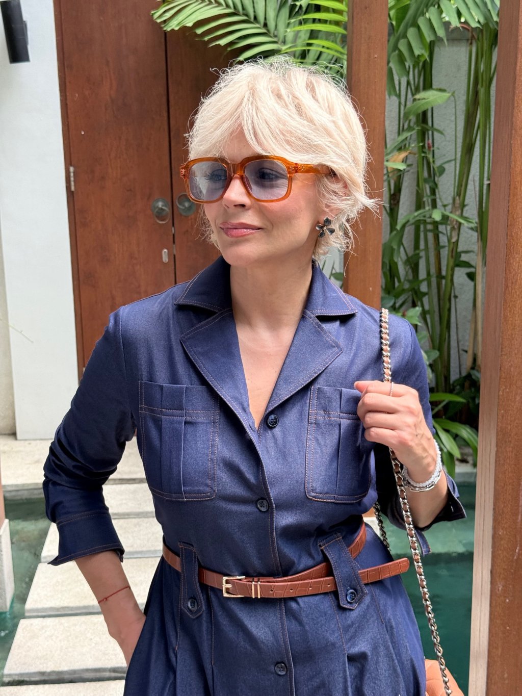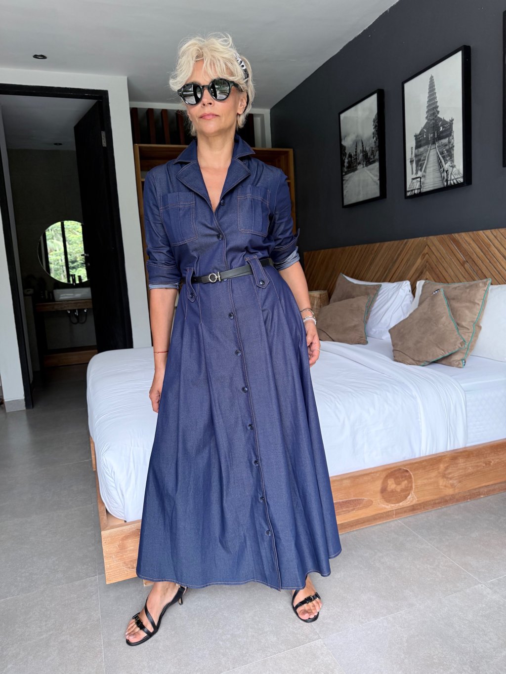Košilové šaty jeans s páskem