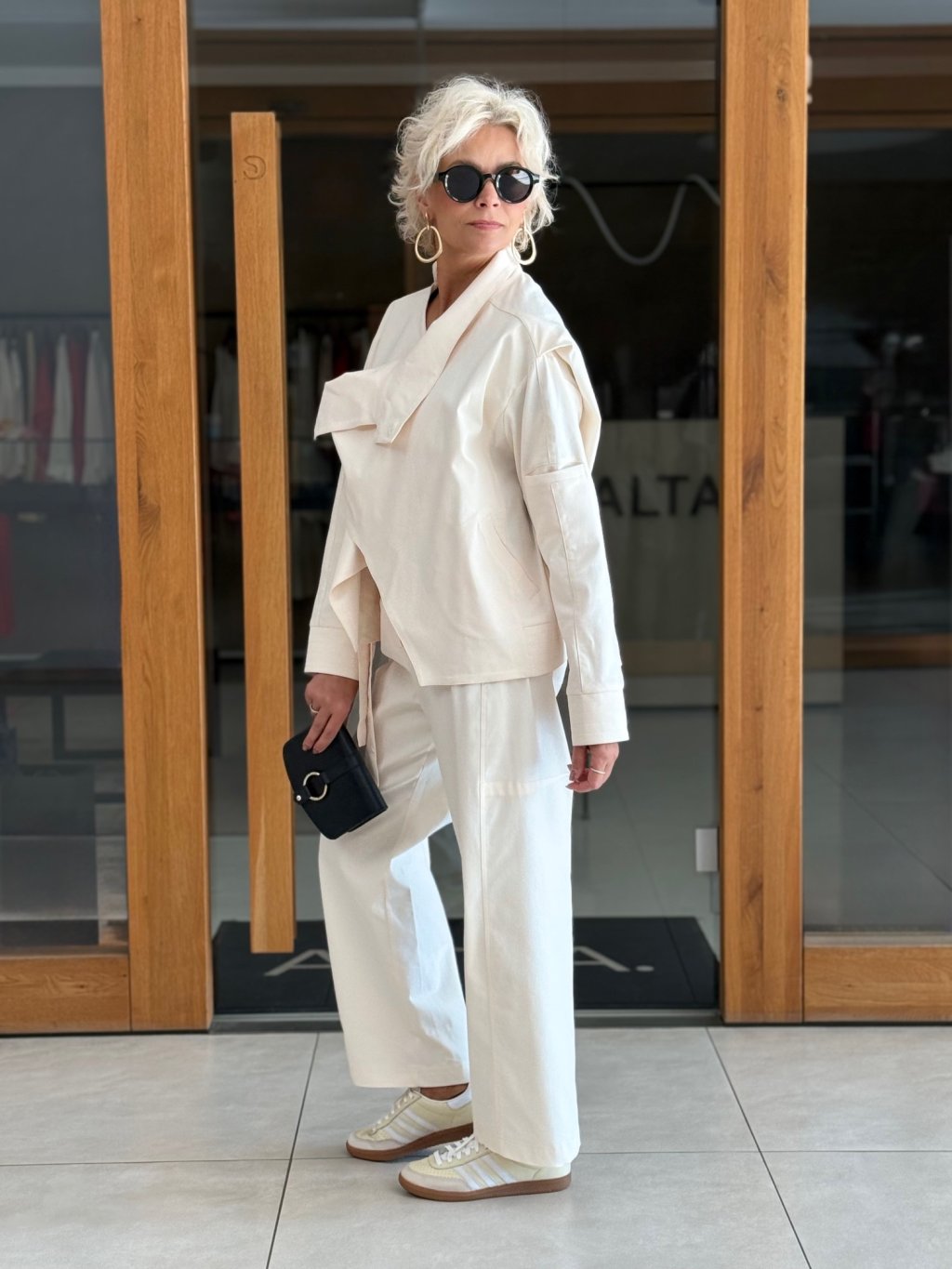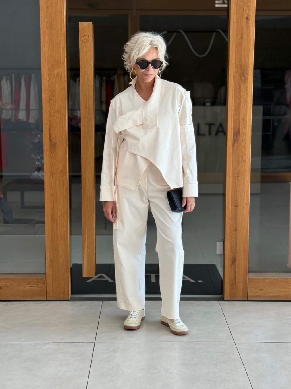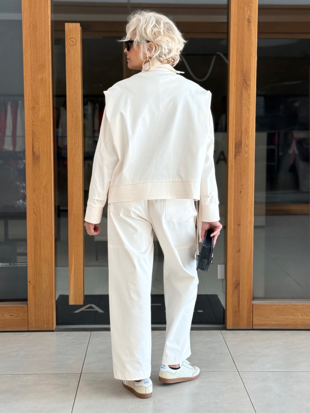 Perfektně ladí s kalhotami ze stejné kolekce a vytváří tak harmonický a elegantní komplet.