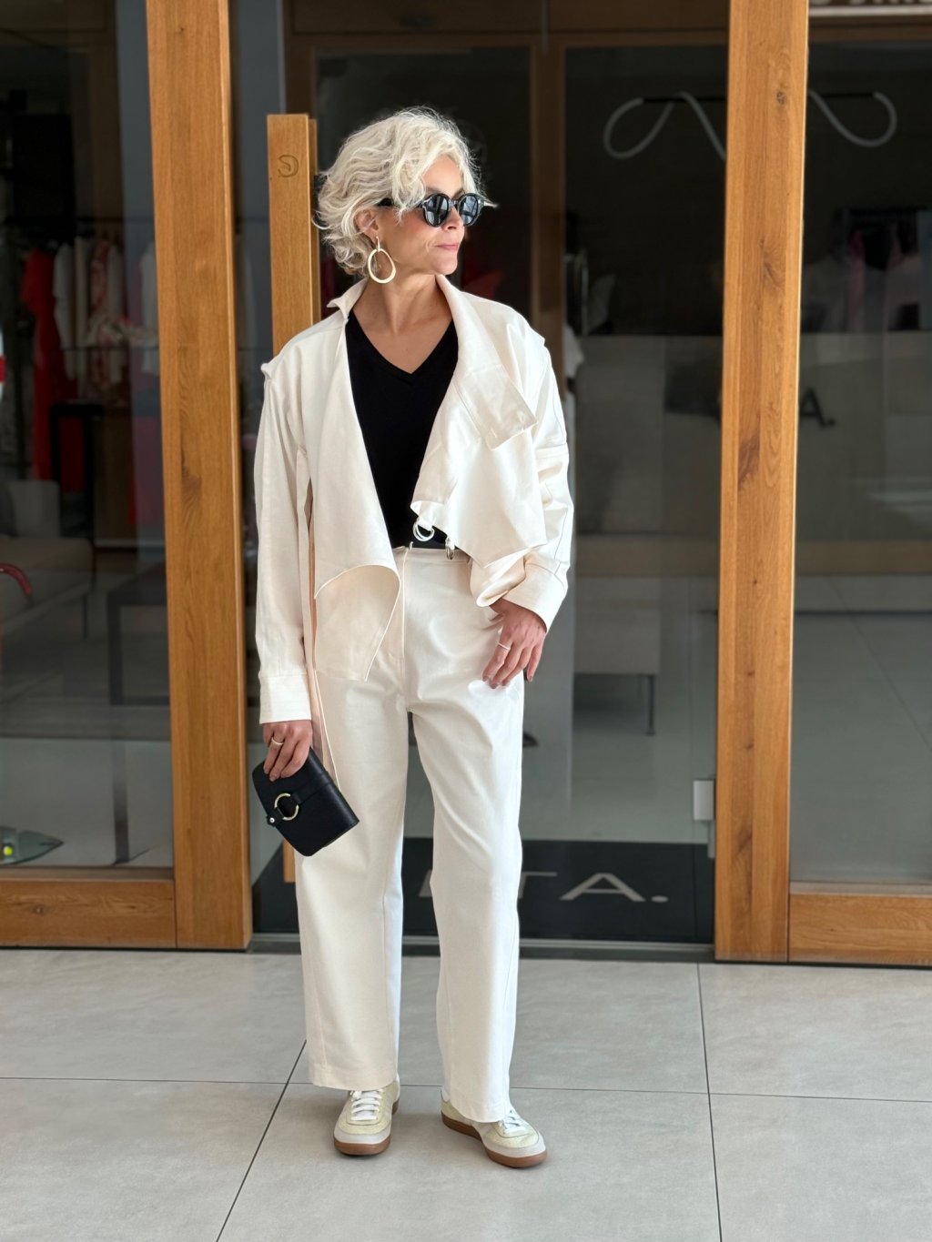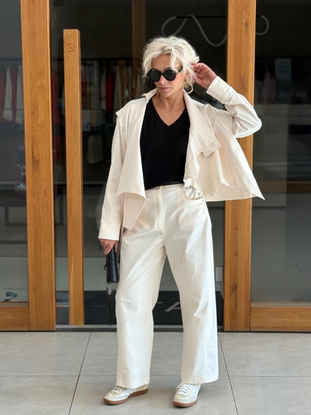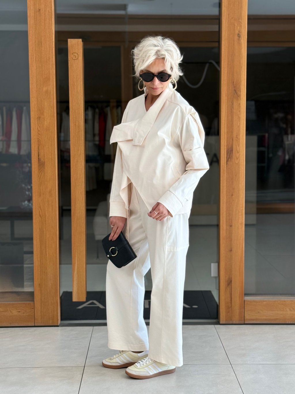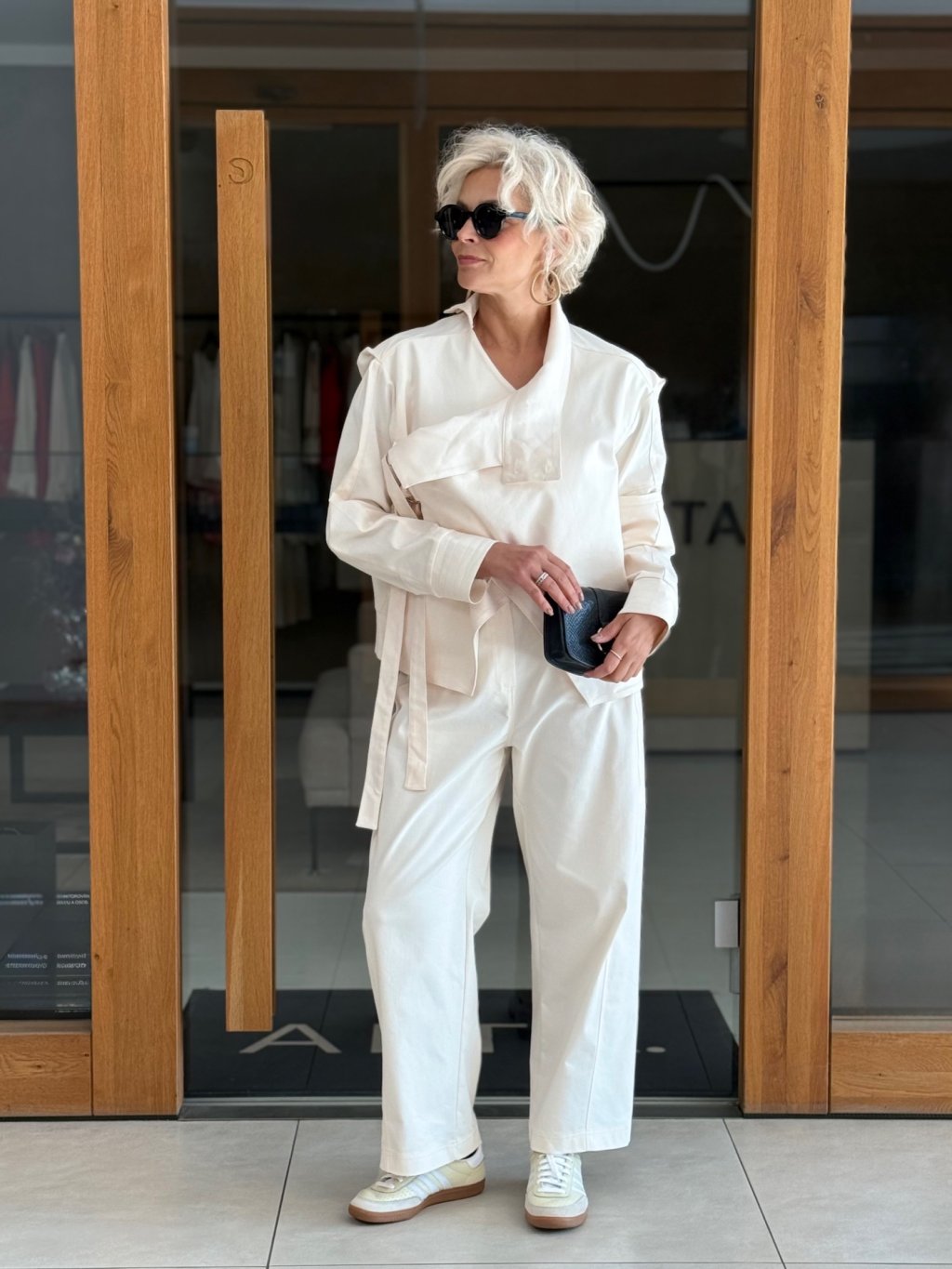 Perfektně ladí s kalhotami ze stejné kolekce a vytváří tak harmonický a elegantní komplet.