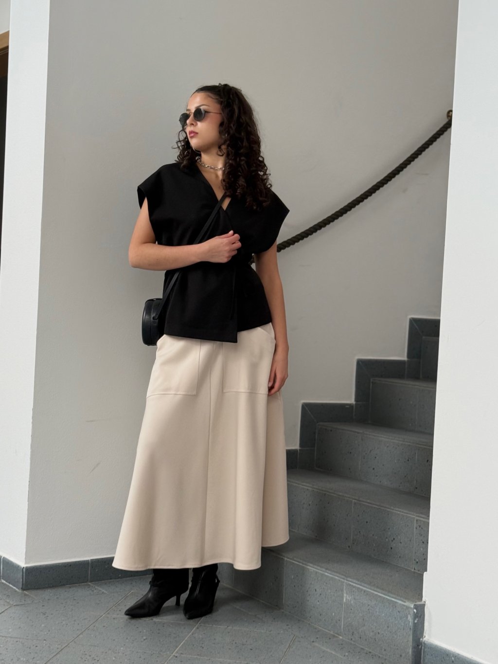 Oversized vesta, která výborně vypadá v kombinaci s kousky ze stejnojmenné kolekce, ale chybu neuděláte ani pokud ji budete kombinovat mimo kolekci.
