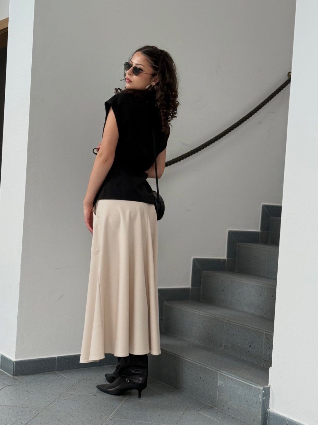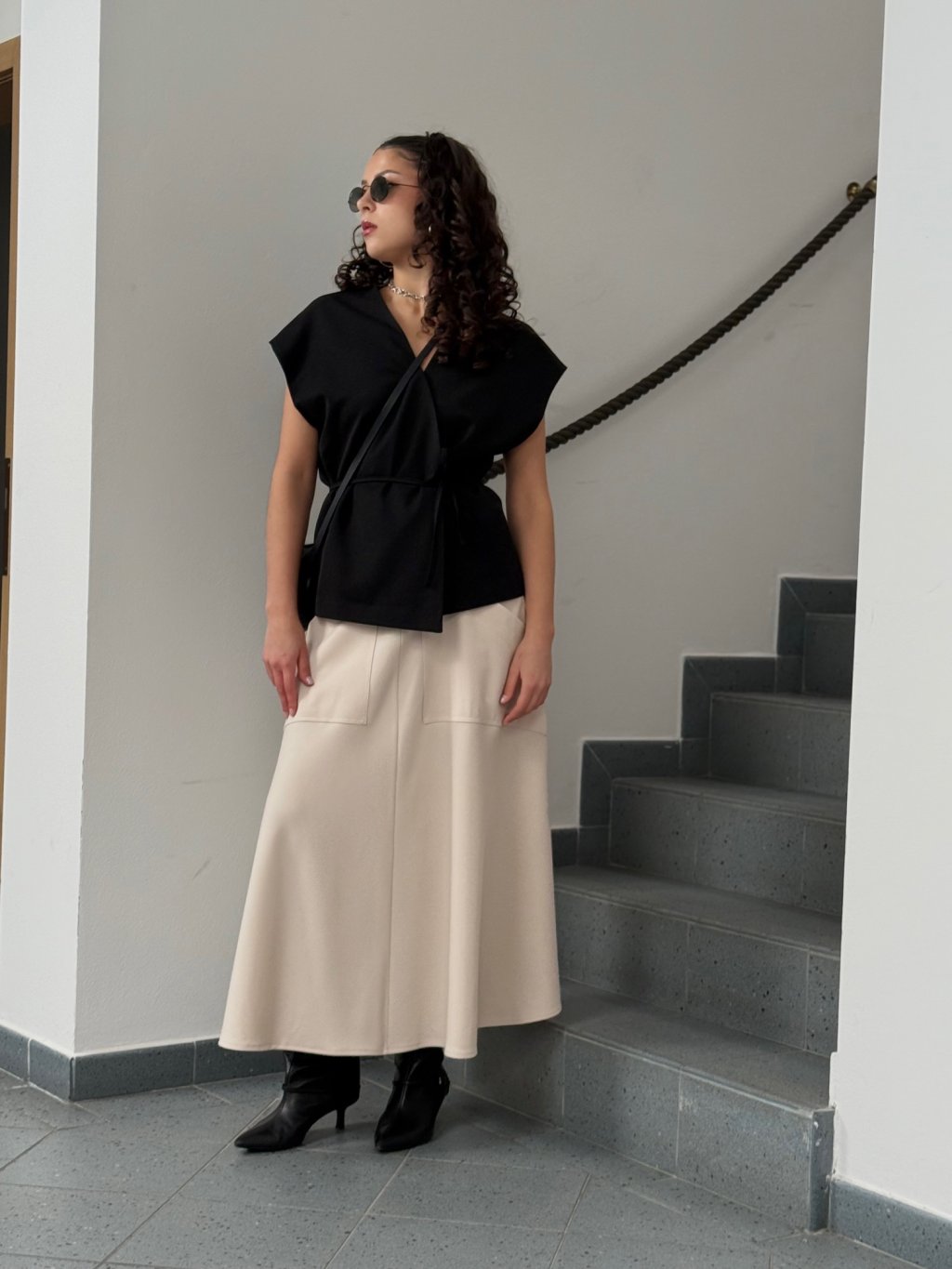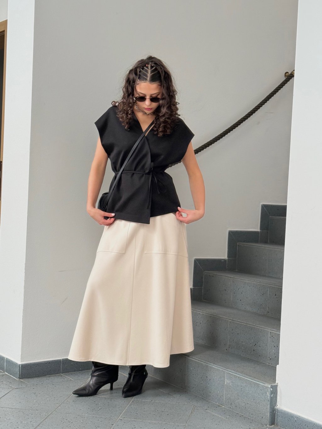 Vesta je podšitá jemnou podšívkou a v pase má šňůrku, kterou lze použít na zvýraznění pasu.