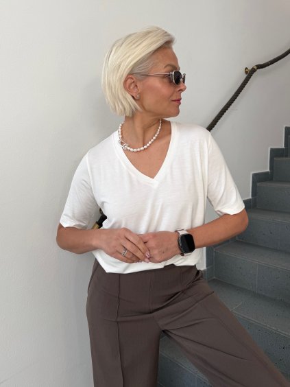 Basic tričko s lodičkovým výstřihem a 3/4 rukávy, které padne každé ženě napříč generacím.